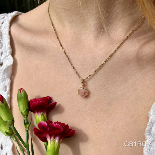 Rose Quartz Crystal Necklace : Garden Buds Collection